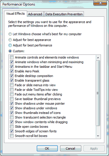 Disabling Visual Effects in Windows 7