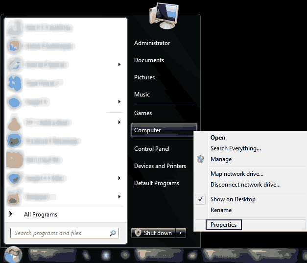- Open Start Menu, right-click on Computer and select Properties.