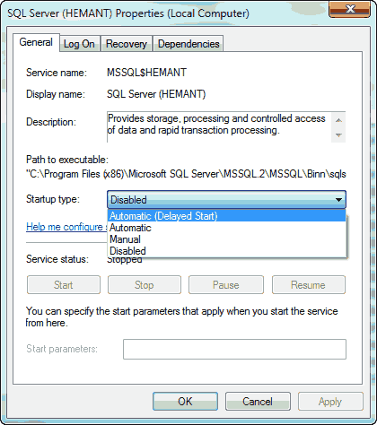 - You have four options to choose from for each service. This can be done by right clicking on any service ans selecting Properties.