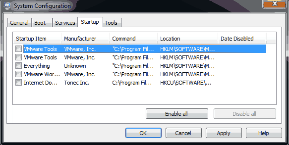 TIP The more applications you disable here, the less will be the boot up time.