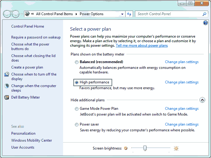 TIP Use Power Saver or Balanced plan when on batteries and “High Performance” plan when using the system on AC power.